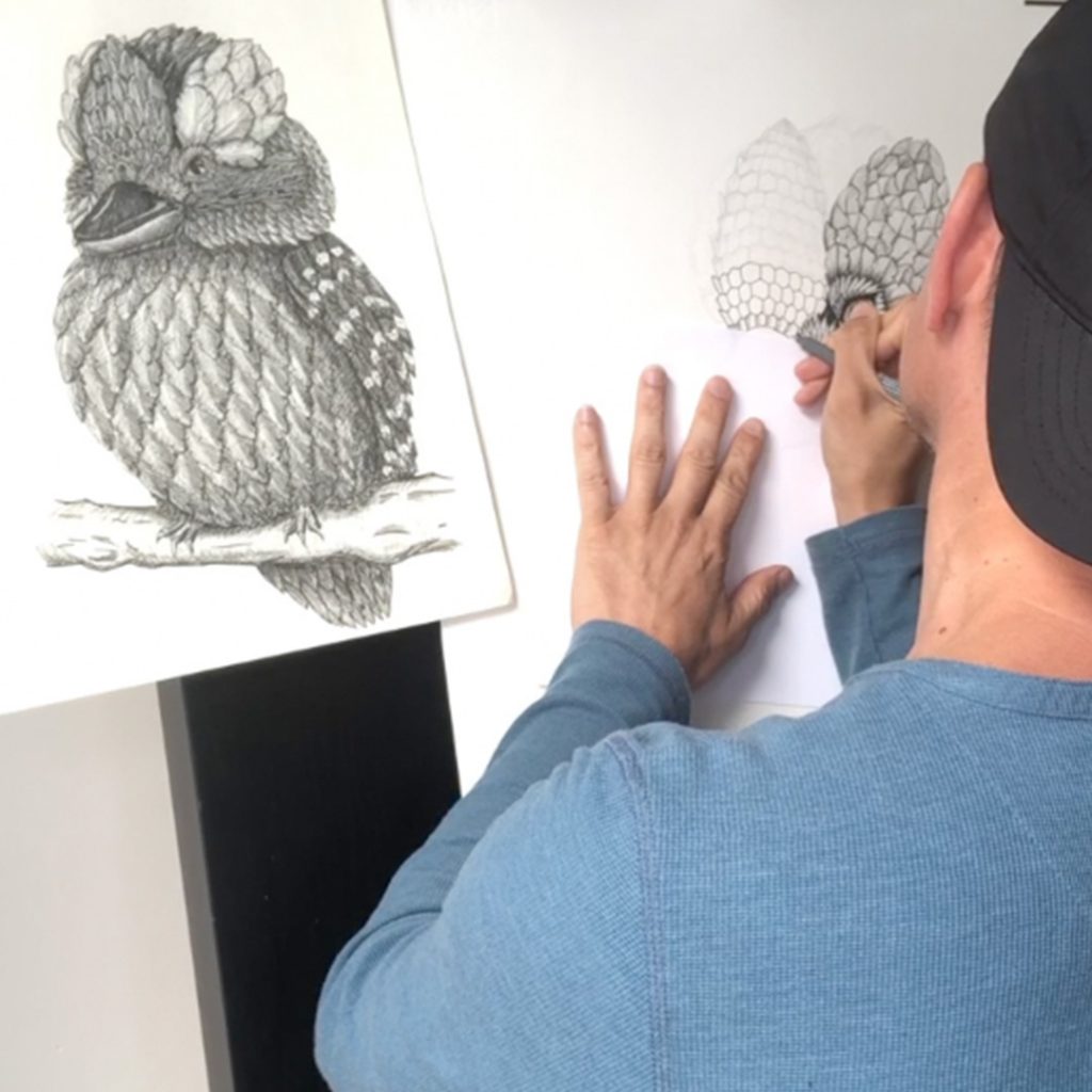 Created on 3 sheets of paper to create depth through layers with a college style. Drawn by hand
